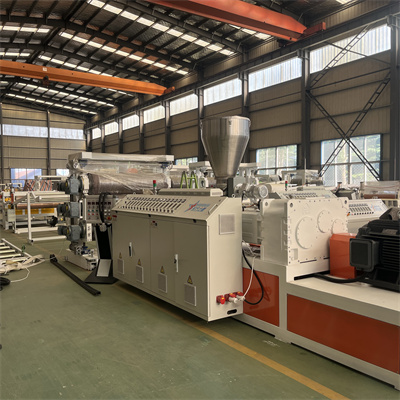 मिश्रित कच्चा माल एक स्क्रू फीडर के माध्यम से हमारे ट्विन-स्क्रू एक्सट्रूडर में प्रवेश करता है। स्क्रू की हीटिंग क्रिया के तहत, प्लास्टिक पिघल जाता है। पिघला हुआ पीवीसी एक टी-डाई से होकर एक खाली शीट बनाता है।