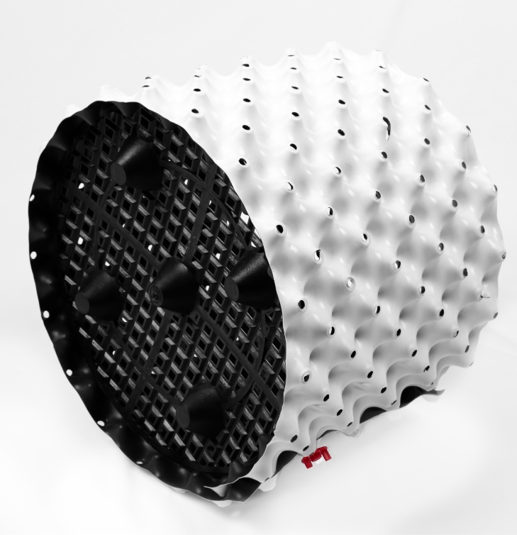 जड़ नियंत्रण संरचना का निर्माण: शीट सामग्री पर बारी-बारी से उभरी हुई और धँसी हुई तरंग/उभार संरचनाओं को लगातार दबाता है, और "वायु-आधारित जड़ नियंत्रण" भौतिक जड़ नियंत्रण प्रभाव को प्राप्त करने के लिए उभारों की युक्तियों पर वेंटिलेशन छिद्रों को छिद्रित करता है।