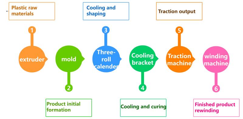 पिघलना और प्लास्टिक बनाना:एक्सट्रूडर का गर्म पेंच कच्चे माल को एक समान पिघला देता है, अशुद्धियों को फ़िल्टर करता है और दबाव को स्थिर करता है।